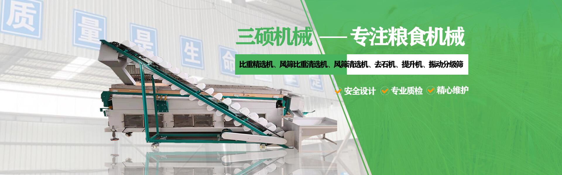 石家莊三碩機(jī)械設(shè)備有限公司是從事糧食清選、種子加工及其它農(nóng)副產(chǎn)品選別的設(shè)備研發(fā)、生產(chǎn)、銷售和服務(wù)于一體的專業(yè)性新興企業(yè)。“品質(zhì)、誠信、共贏”是公司的核心理念,“以人才為戰(zhàn)略條件、以品質(zhì)為拓展基礎(chǔ)、以共贏為奮斗目標(biāo)”是公司的經(jīng)營理念。品質(zhì)鑄就、誠信經(jīng)營、不斷創(chuàng)新!三碩機(jī)械致力于為三方(供應(yīng)商、生產(chǎn)商和使用商)收獲碩果、事業(yè)騰飛!歡迎有目標(biāo),能為目標(biāo)而不斷努力! 公司位于石家莊市鹿泉區(qū)孟同工業(yè)園。交通便利。占地面積2000多平方米。質(zhì)量是生命,安全是保障是公司的生產(chǎn)管理原則。生產(chǎn)材料不低于**標(biāo)準(zhǔn)。采用數(shù)控激光下料、數(shù)控折彎、噴塑表漆處理等工藝標(biāo)準(zhǔn)。我們將致力于打造品質(zhì)保障、高效適用的產(chǎn)品和專業(yè)服務(wù)。 石家莊三碩機(jī)械設(shè)備有限公司,誠摯歡迎廣大新老客戶朋友咨詢和考察!